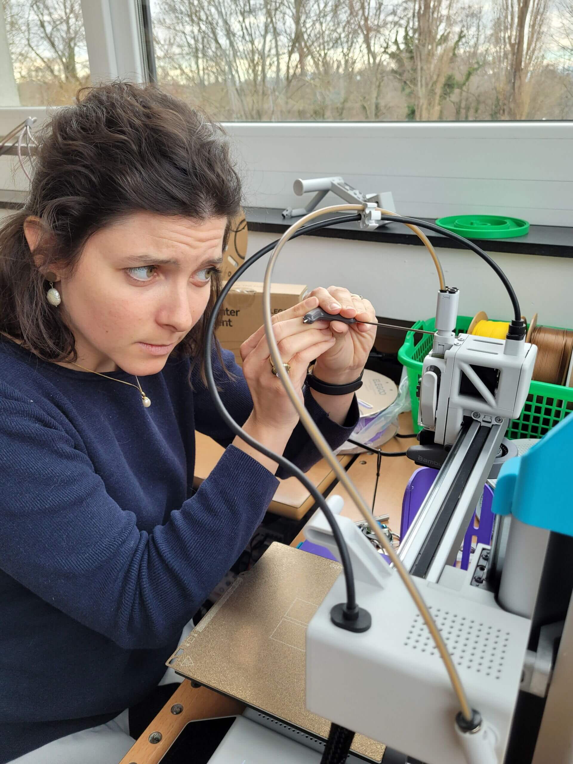 Frau Benatti brachte unseren Bambu A1 Mini, dessen Düsen sich infolge vieler Drucke für den Tag der offenen Tür verstopft hatten, wieder zum Laufen und tauschte präzise das benötigte Ersatzteil aus - Maschine zufrieden, Mission erfüllt.
