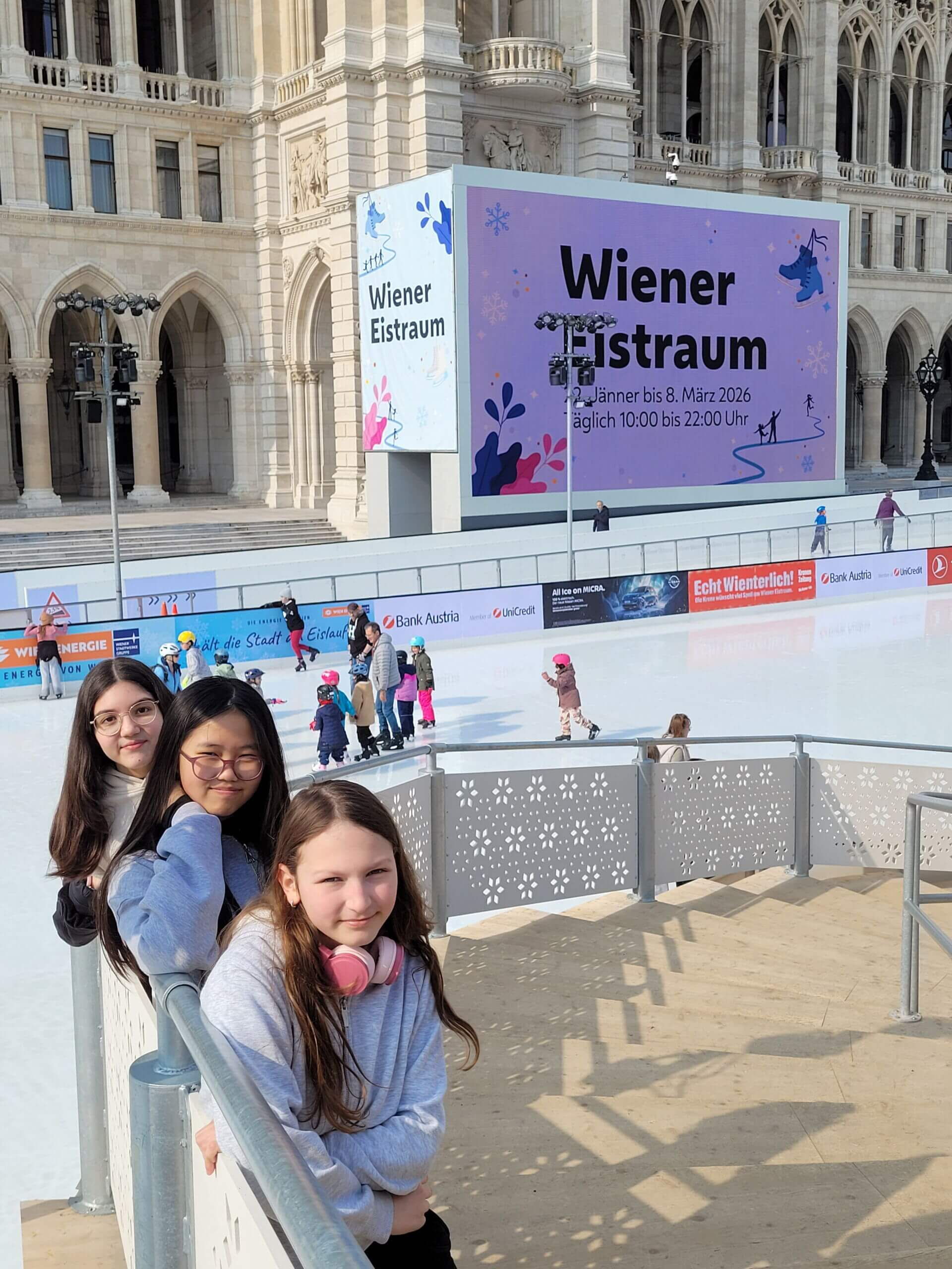 Am Mittwoch, 04. 03. 2026, beendeten die 3a und 3c sowie freiwillige Schülerinnen und Schüler der 4. Klassen die diesjährige Eislaufsaison auf der 10.000 Quadratmeter großen Eisfläche des Wiener Eistraums.