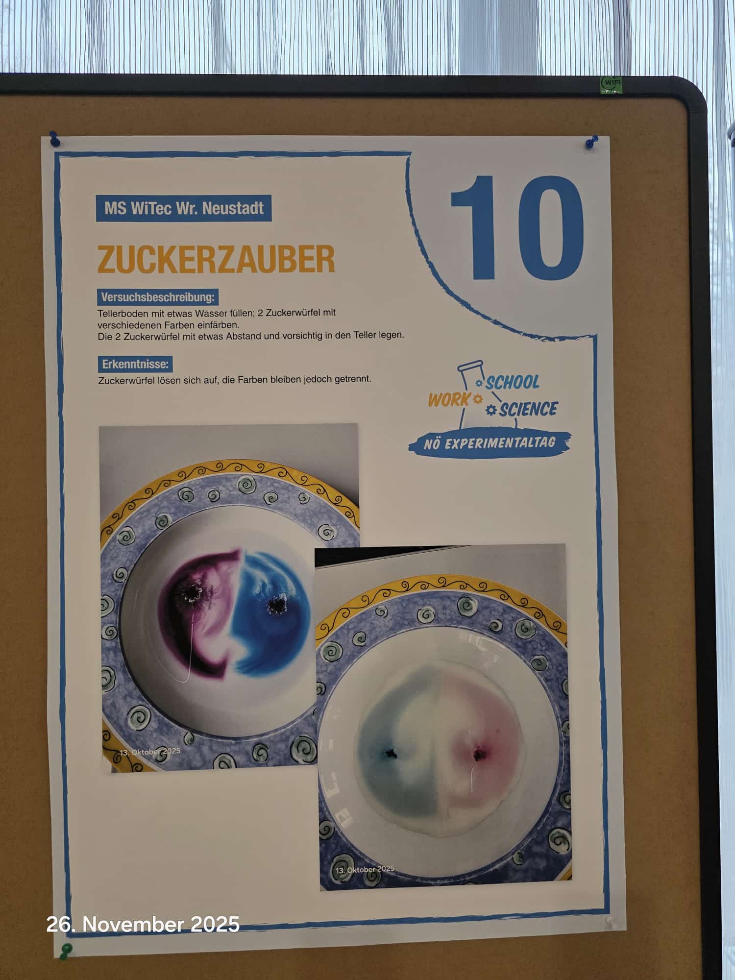 Am Mittwoch, 26. 11. 2025, fuhr die 3c zum 7. niederösterreichischen Experimentaltag ins WiFi Mödling , um die Besucherinnen und Besucher mit ihrem Zuckerzauber-Experiment zu begeistern.