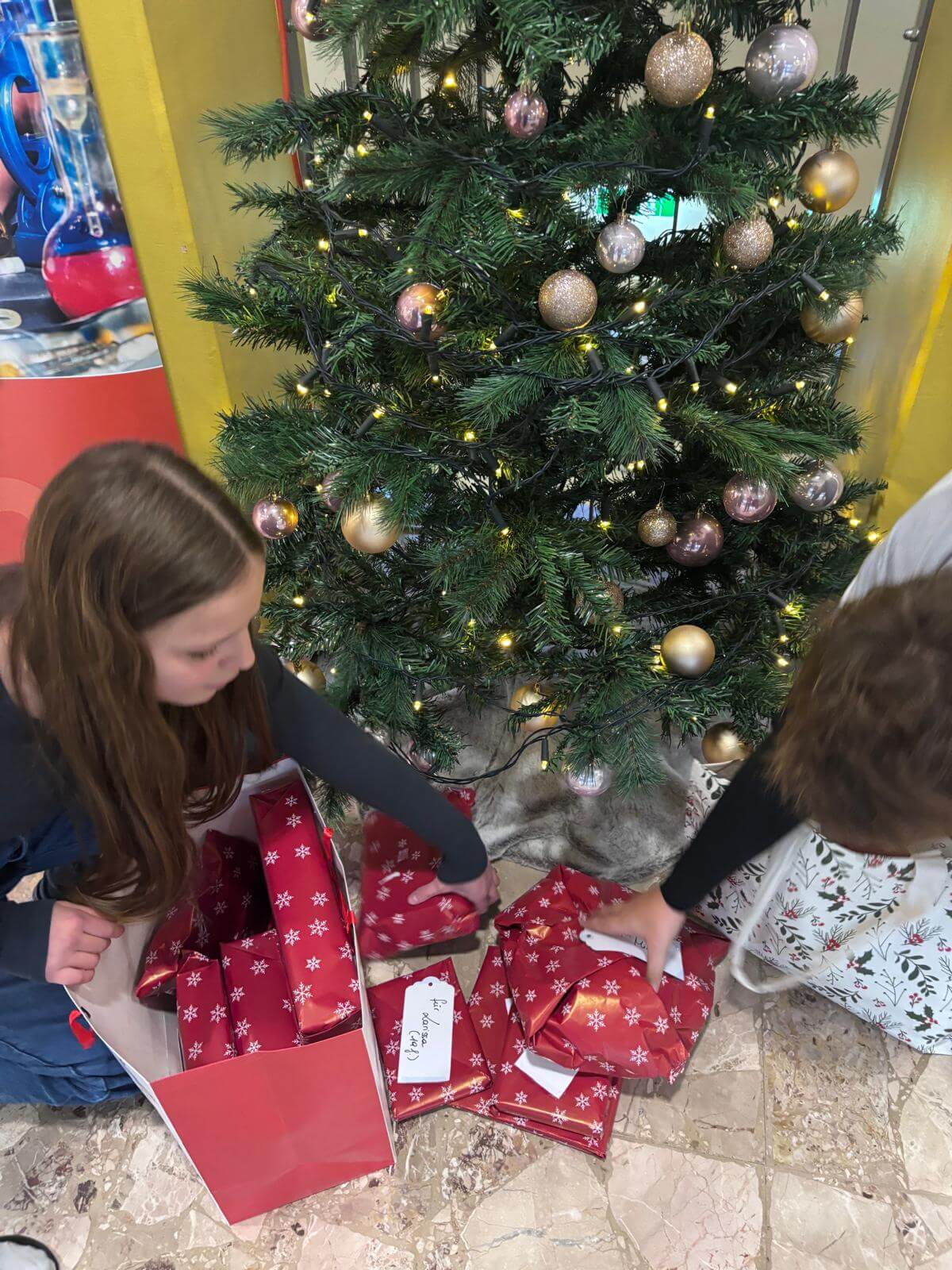 Bald war die ganze Schule mit dabei, Geschenke sammeln – eins, zwei, drei.