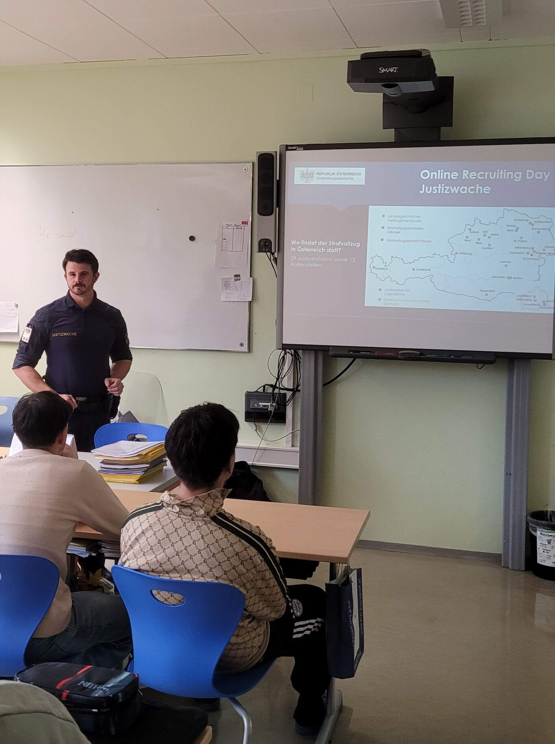 Am Dienstag, 16. 12. 2025, besuchte uns Michael Pausackerl, Kontrollinspektor und Recruiting Officer der Region Ost der Justizwache.