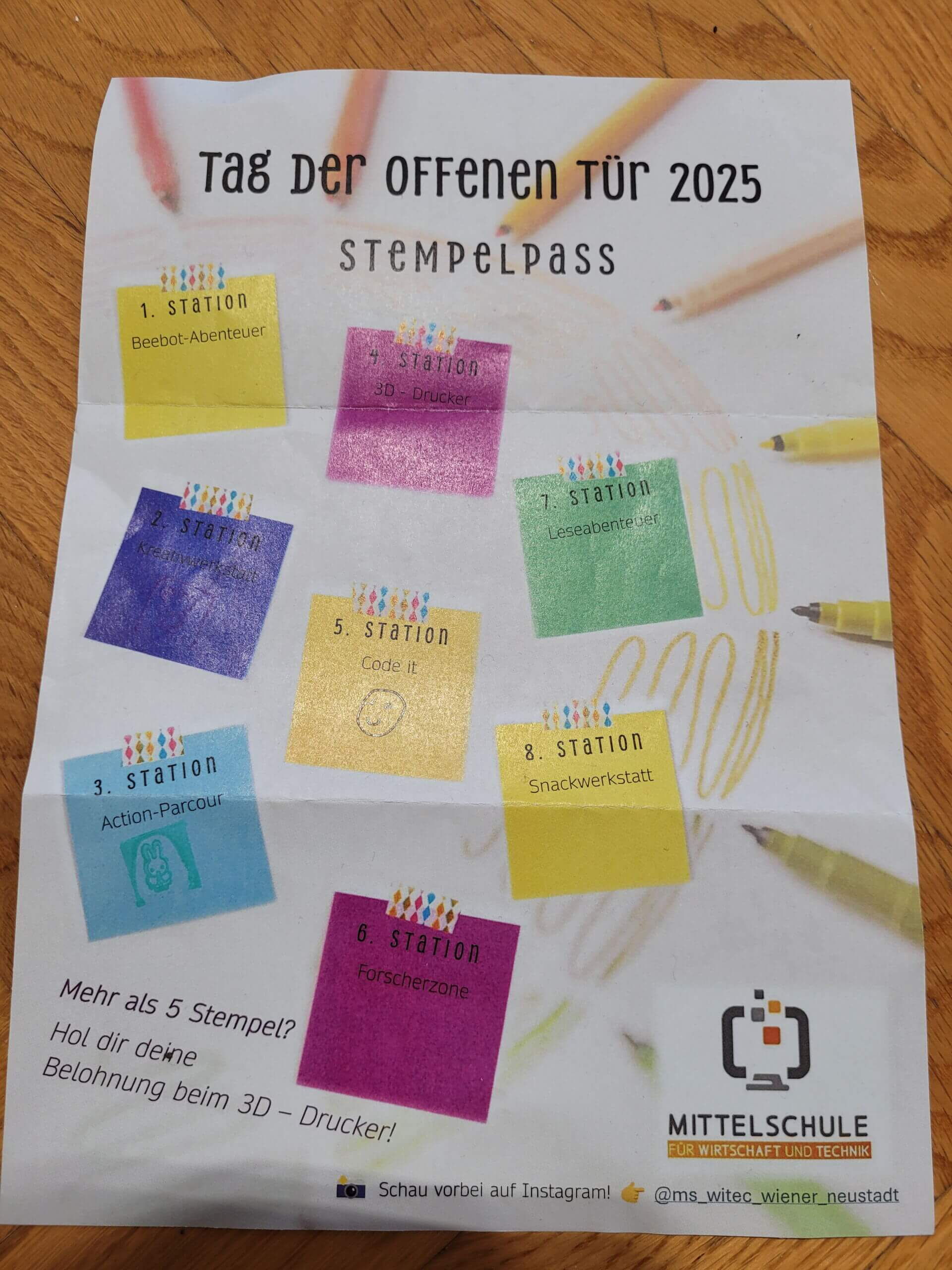 Es gab insgesamt acht Stationen und für jede absolvierte Station erhielt man einen Stempel - bei mehr als fünf Stempeln durfte man sich seine verdiente Belohnung, erstellt mit unseren 3D-Druckern, die ebenfalls eine Station bildeten, abholen. Im Werkraum, in dem sich bereits zahlreiche Werkprodukte für unseren Adventstand im Dezember türmen, wurde fleißig gebastelt und gewerkt und im Turnsaal wuchs man über eigene koordinative und kognitive Grenzen hinaus. Im Physiksaal gab es zahlreiche Experimente, die einfach und gefahrenlos auch zuhause nachgemacht werden können, rund um den Informatikraum wurde codiert und programmiert und im obersten Stockwerk wurde beim Leseabenteuer in der Bibliothek gerätselt und gepuzzelt und in unserer Lehrküche wurde Kekse gebacken sowie verziert, um unseren jungen Gästen sowie ihren Eltern und natürlich auch unseren engagierten Schülerinnen, Schülern und Lehrkräften eine schmackhafte Verköstigung für zwischendurch bieten zu können - ich gestehe, dass ich diese Station mehrmals besucht habe. Beim Infostand im 1. Stock, der auch von Direktorin Sabine Kreitzer betreut wurde, konnte man weiterführende Informationen über unsere Schule und die Anmeldung einholen. Es war ein gelungener Tag, der bestimmt einige der jungen Interessentinnen und Interessenten künftig an unsere Schule führen wird und wir bedanken uns bei allen Besucherinnen und Besuchern. Besonders schön war auch, dass uns einige ehemalige Schülerinnen und Schüler mit ihrem Besuch beehrten, denn wir freuen uns stets über ein Wiedersehen.